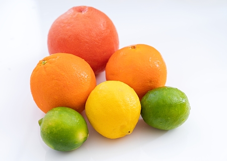 Variety of citrus fruit including lemons, lines, grapefruits and oranges.