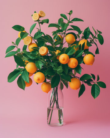Fresh Lemons Bouquet in Glass Vase on Pink Background Simplicity and Elegance Summer Citrus Aesthetic Bright and Vibrant Blooms Bouquet
