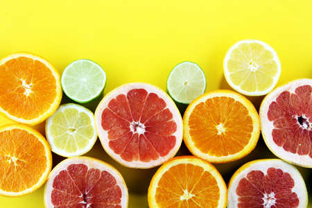 Citrus fruit background with a group of oranges lemons lime tangerines and grapefruit as a symbol of healthy eating and immune system boost with natural vitamins