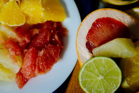 So vibrant, so healthy. a variety of citrus fruits cut into slices on a plate.