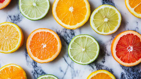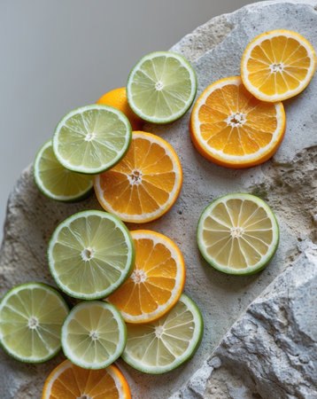 AI Generated. Lime Orange Citrus Fruit Slices On Stone