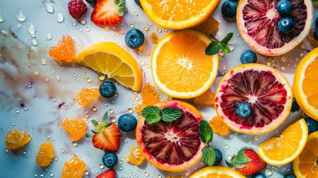 A beautiful arrangement of fresh citrus slices including orange, lemon, and grapefruit, garnished with mint, ideal for health-conscious meals or food photography.