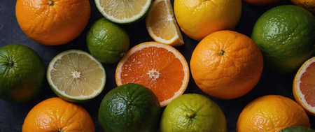 Variety of citrus fruits including lemons, lines, grapefruits and oranges. generated by AI