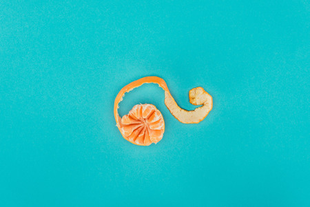 half peeled tangerine with copy space