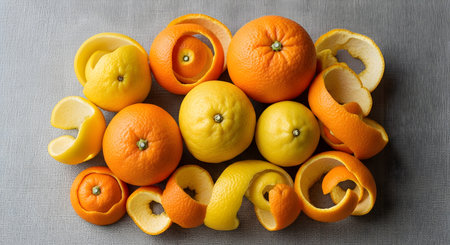 Macro shot of vibrant orange citrus peels, highlighting their texture