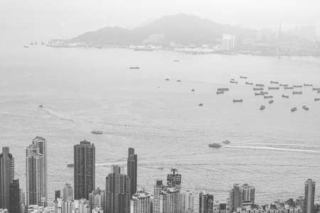Hong Kong harbour Black and White, dusty day