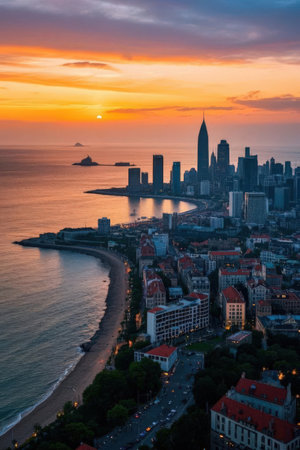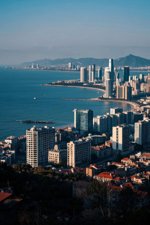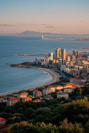 Panoramic view of Qingdao's coastal urban architecture