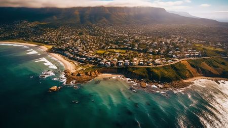 Generative AI : Aerial view of Scarborough Beach during sunset South Africa