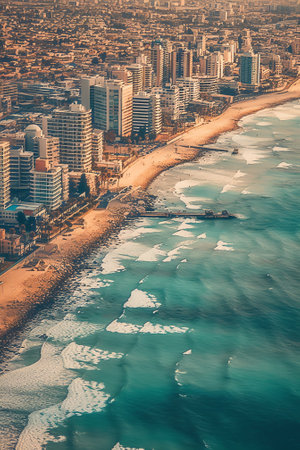 Generative AI : Aerial view of TelAviv coastline Israel