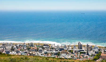 Cape Town, South Africa - October 15, 2019: Elevated view of Green Point coastal suburb in Cape Town