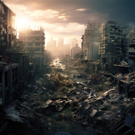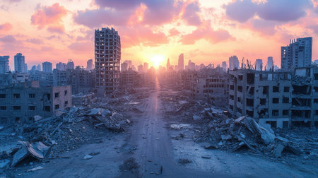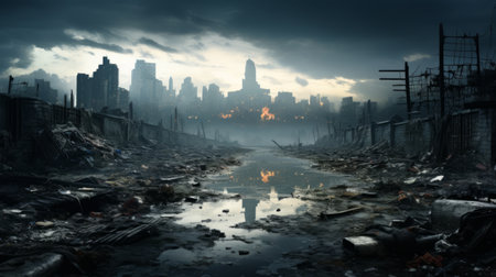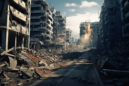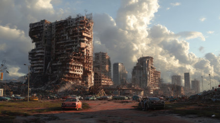 AI Generated. city destroyed by war Apocalypse battlefield aftermath ruins