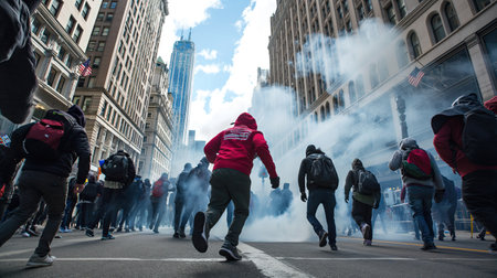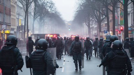 Urban turmoil, street riots civil unrest and societal tensions, chaos and intensity of public protest and demonstration in the heart of the city