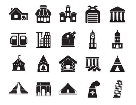Set of skyscrapers. Black and white icons. Vector illustration.