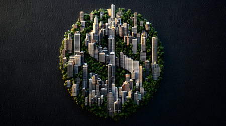Miniature cityscape featuring skyscrapers and greenery, symbolizing urban sustainability and nature