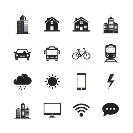 Urban infrastructure vector icons set, modern solid symbol collection filled pictogram pack. Set includes icons playground buildings service.