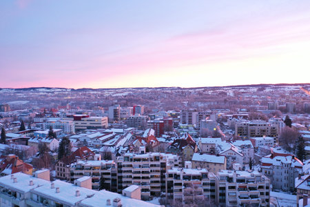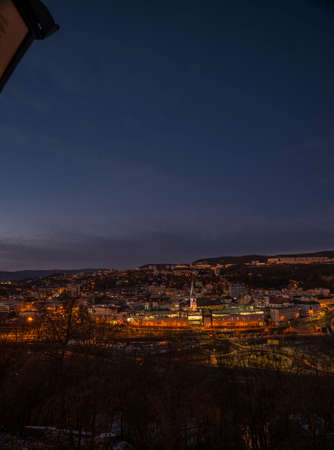View from Vetruse building over Usti nad Labem city in winter color sunny evening after sunset