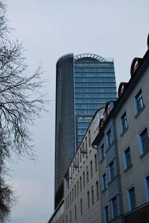 Prague, Czech republic - January 21, 2021. Detail of City Tower skyscraper in Pankrac