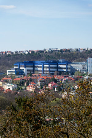 Czech largest medical facility Motol university hospital in Prague, Czech republic, sunny daylight, aerial view