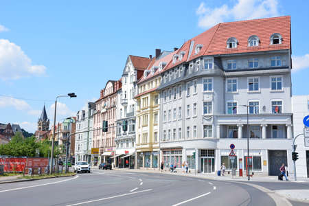 SUHL, GERMANY - CIRCA APRIL, 2019: Bahnhof Street of Suhl in Thuringia, Germany