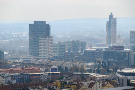 Zagreb capitol of Croatia. Panorama with Cathedral in the center - old city.