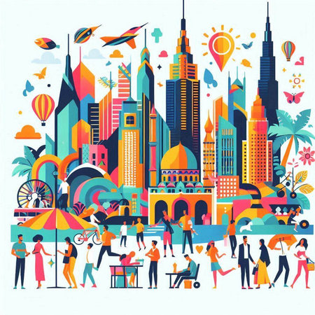 An AI generated illustration of a multicolored collage of photographs featuring various buildings