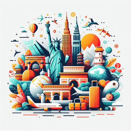 Travel and tourism concept with famous landmarks of the world. Vector illustration