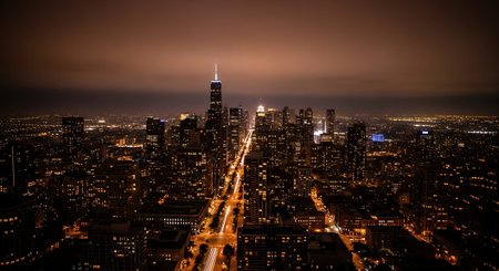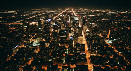 Aerial view of Chicago downtown at night, Illinois, USA.