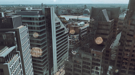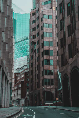 London, UK - Complex of corporate buildings, banks and office skyscrapers in the City of London. View west side of the City