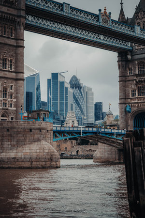 Tower Bridge in London city, United Kingdom with thick clouds on the background. Panorama