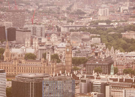 Vintage looking Aerial view of the Houses of Parliament in London, UK