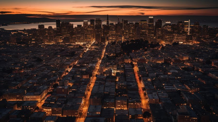 A stunning cityscape at dusk created with Generative AI