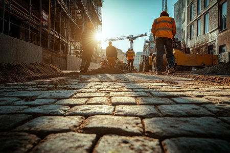 working street in the city where people are doing work