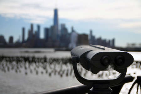 The binoculars which point towards downtown New York City from the other side of the river in Jersey city