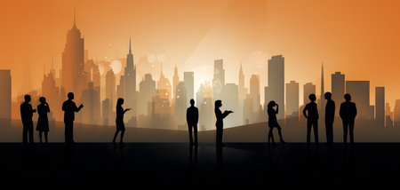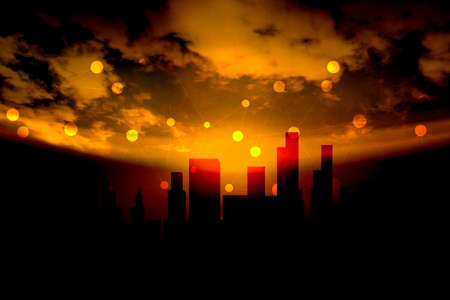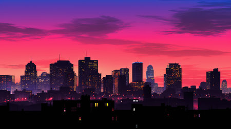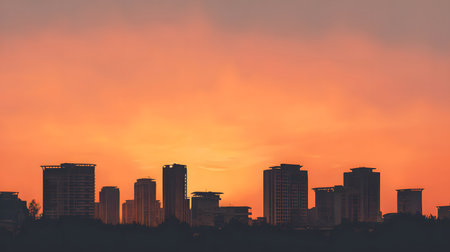 Stunning cityscape silhouette against vibrant sunset sky offers a modern urban backdrop for your creative projects
