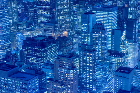 New York, USA downtown skyscrapers at night. View from Empire State Building.