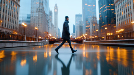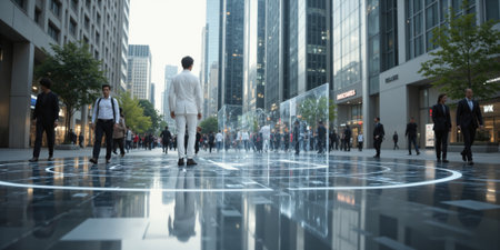 Motion business people walking in busy street in large industrial city.AI Generative.