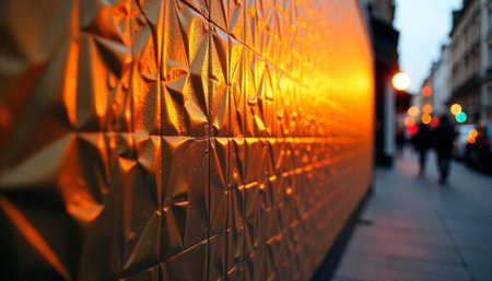 Nighttime brick wall with dramatic lighting for urban backgrounds