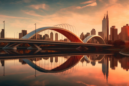 modern bridge architecture with city skyline, created with generative ai