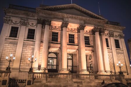 Dublin, Ireland - February 11, 2019: Architectural detail of the city Hall (Rotunda Hall) a night on a winter day