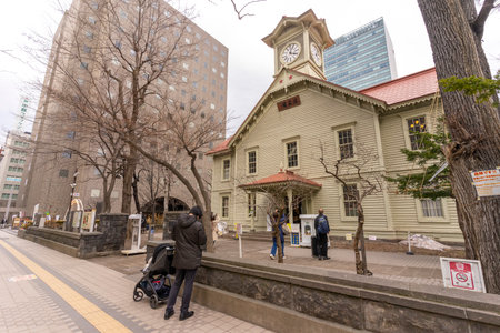 Sapporo Clock tower with Snow in winter season. landmark and popular for attractions in Hokkaido, Japan. Travel and Vacation concept