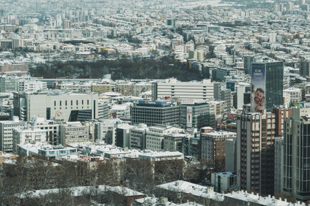 Ankara, Turkey- February 16 2021: Aerial view of Kizilay district in winter