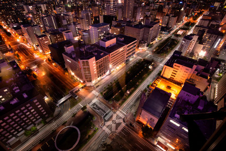 Sapporo, Hokkaido, Japan downtown skyline from above at twilight.