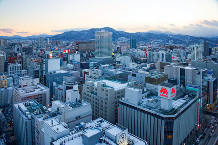 Sapporo city downtown skyline cityscape of Hokkaido Japan at sunset