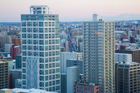 Skyline of the central ward of Sapporo, Hokkaido, Japan.