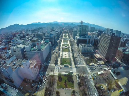 SAPPORO,JAPAN-April 25 2016 : Sapporo Tower top view on surround around Odori park ,public place for people come to relax in twilight time.