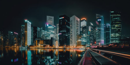 Cityscape at Night: A stunning view of a metropolitan skyline illuminated by city lights. Generative ai.
