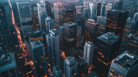 Dense skyline of highrise buildings under vibrant city lights Dec 17 2025
