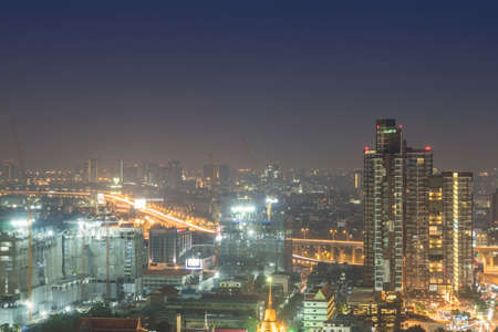 Bangkok, Thailand - 14 Juny 2019: Panoramic landscape scenery of buildings and skycrapers in the central business area of Bangkok city at night