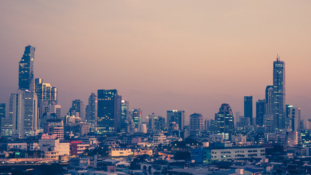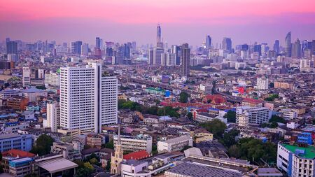 December-3- 2021 : Bangkok, Thailand, Cityscape of high rise building in Bangkok, panorama of Modern buildings and high towers in the evening.