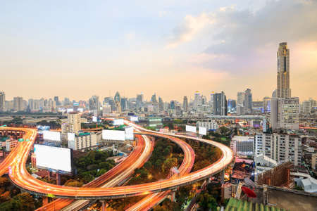 Cityscape night and traffic car lighting, Bangkok bird eye view